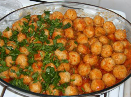 Bulguru ıslatıp, aşağıdaki malzemelerin hepsini birlikte karıştırıp, iyice yoğuralım. Sonra küçük parçalara ayırıp, yuvarlak yapalım ve genişçe bir tabağa yaptığımız yuvarlak parçaları koyarak servise hazır hale getirelim.