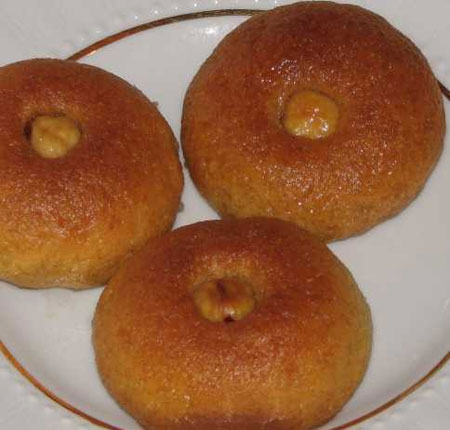 1 yumurta, 1 çay bardağı şeker iyice çırpılır. Diğer malzemeler ve aldığı kadar un ilave edilerek yoğrulur, kulak memesi yumuşaklığında hamur elde edilir. Cevizden biraz büyük hamur bölünerek elimizde yuvarlanır. Tepsiye dizilir. Parçaların üzerine de ceviz ve ya fındık parçaları konulur ve tepsideyken üzerlerine yumurta sarısı sürülür. Pembeleşinceye kadar 180 derece fırında pişirilir. Şurup soğuk, tepsi sıcak olacak şekilde, şurup tepsiye dökülür.